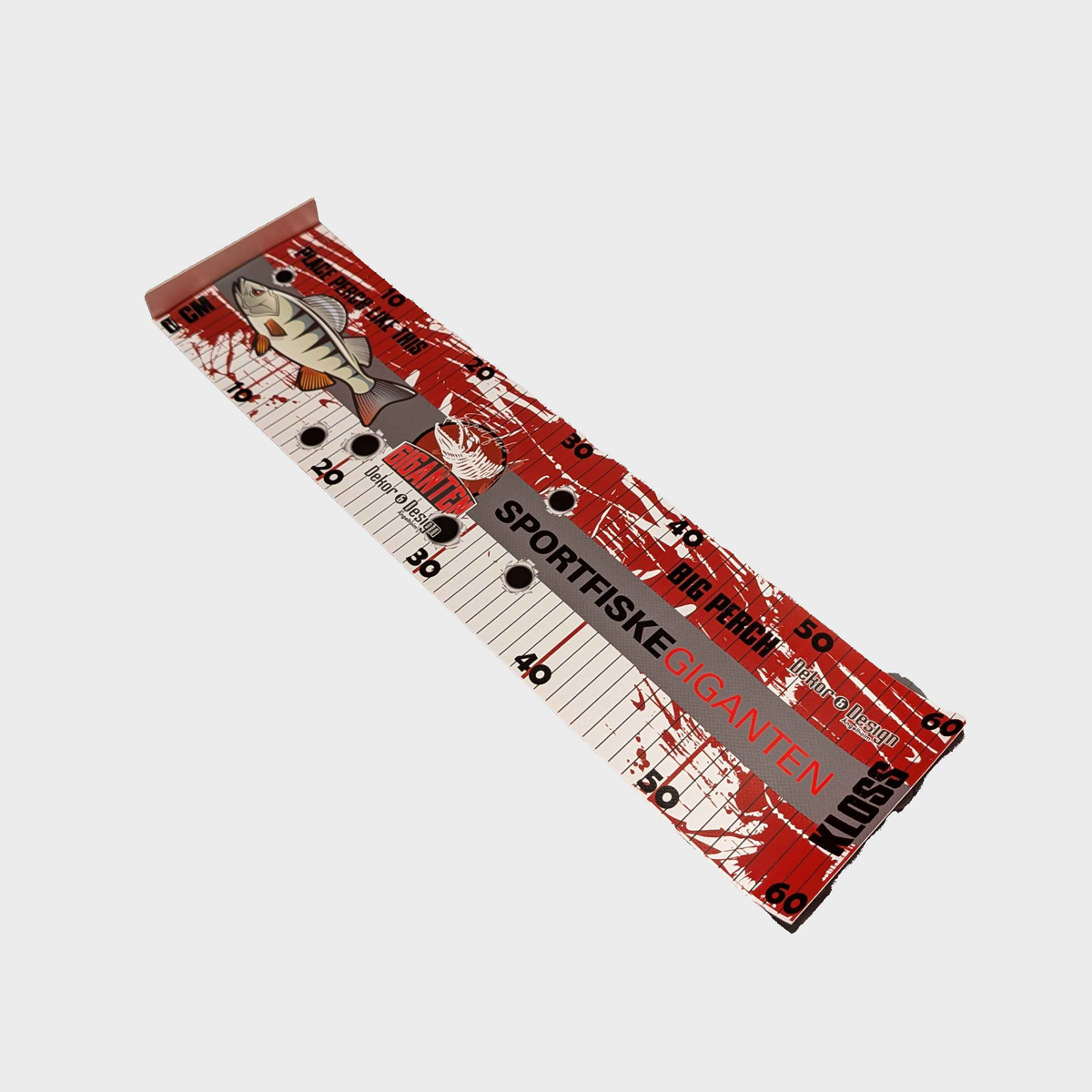 Our own measuring tape in 60 cm is a perfect roll-up measuring board for smaller species such as perch. The measuring tape takes up minimal space thanks to the packaging and is thus easy to take with you. Our measuring tape also has a stop at the beginning to get an accurate measurement.