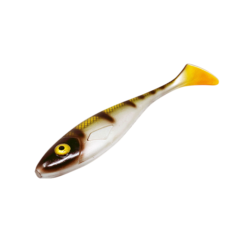 Jiggen har en stabil rullande sida till sida gång i vattnet och kan fiskas med både shallowskruv och skruvskalle/päronbly.